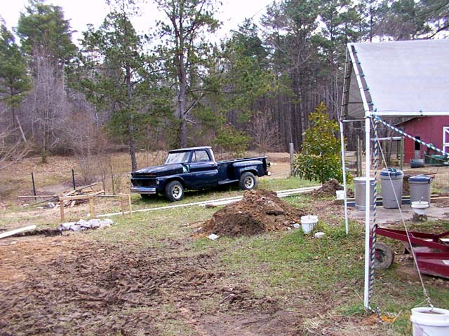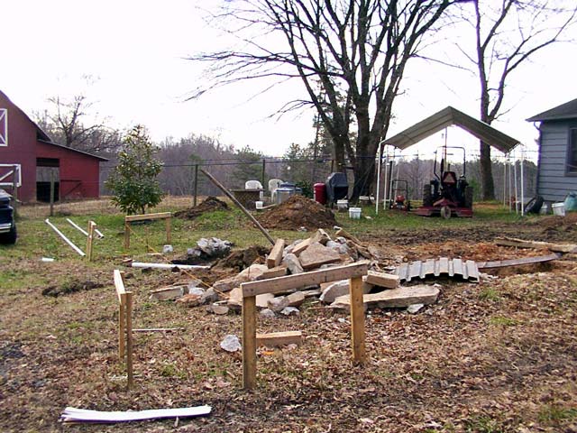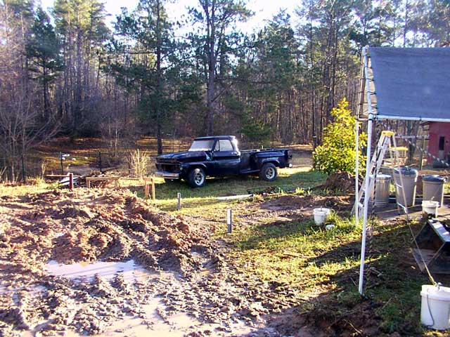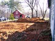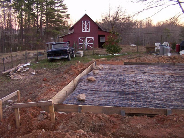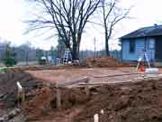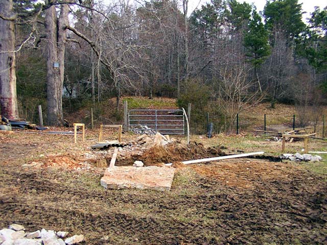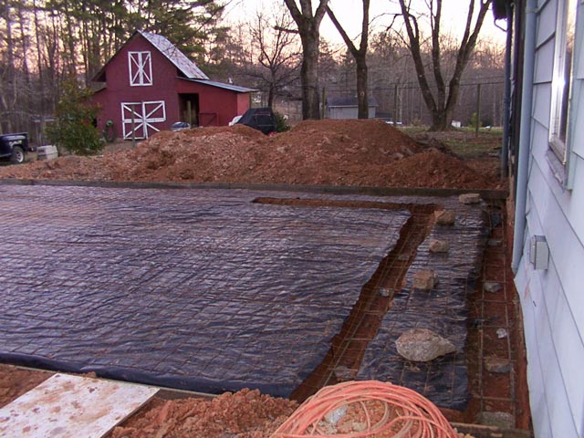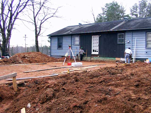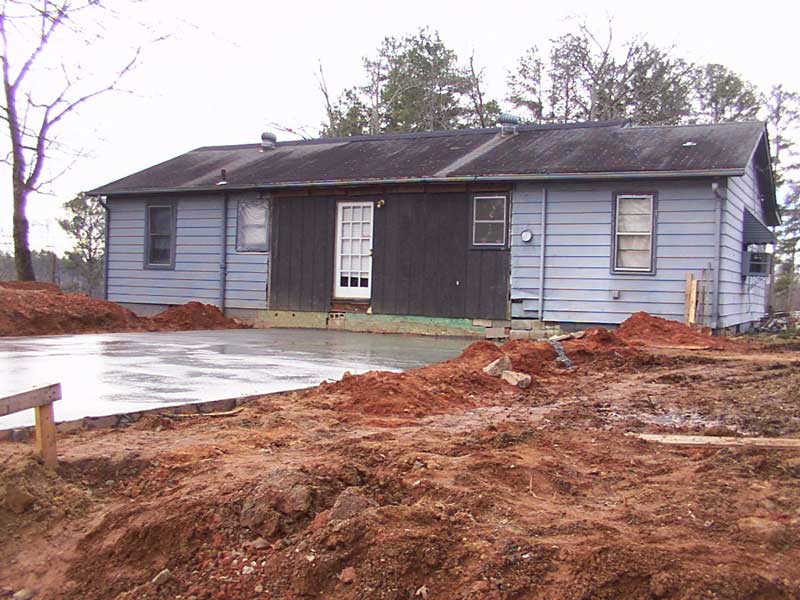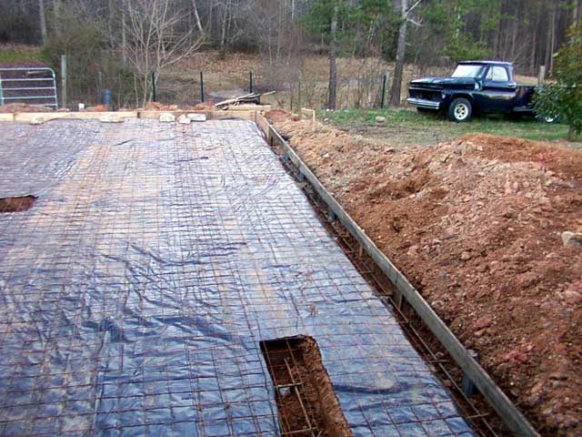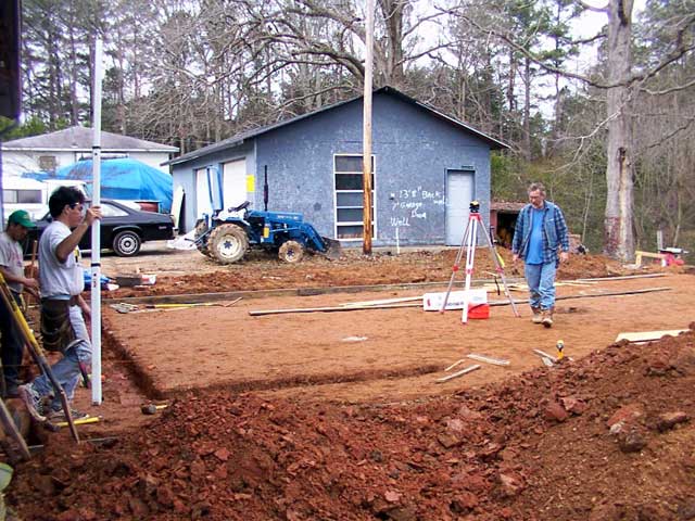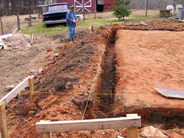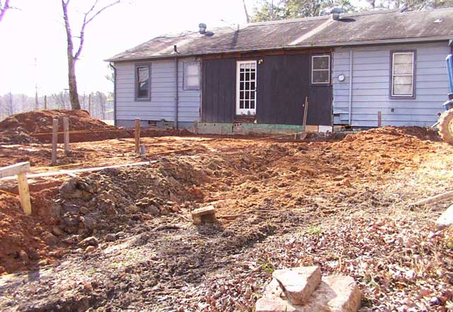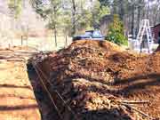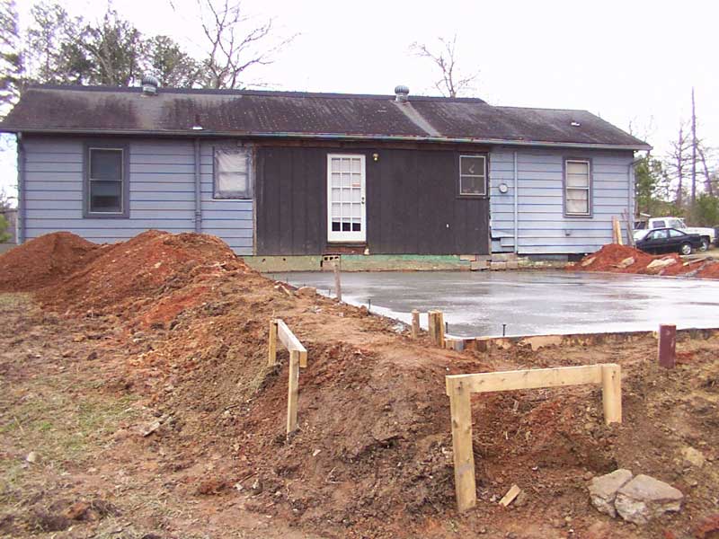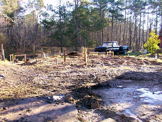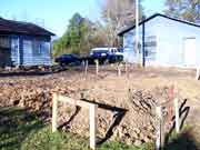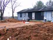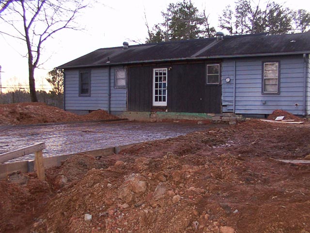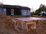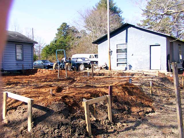 Murphy strikes! At this point, the plastic, wire, and rebar were in place and we were ready to pour concrete. The pad was formed to Gwinnett County code. However, the inspector who came out was smarter than the people who wrote the code (Ahem). He decided Gwinnett County code wasn't actually sufficient for building a monolythic slab in compacted clay. Making the long story short, much of our footer is now 24" inches deep, with many places having been changed to 36" deep! If you think that is ridiculous, you are correct. While the crew was digging the footers out deeper, we had a lot of rain which further impeded the progress of the project. We didn't take any more pictures because from the camera's point of view, nothing changed. |