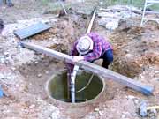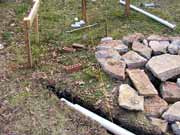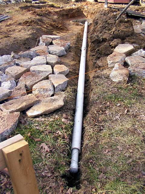 By this point, we had taken out the well covers, the back patio, and part of the sidewalk. We laid down the new well pipes and capped them up to keep them clean until we can hook them up later. |