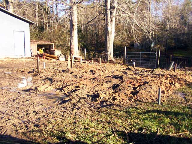 We began grading on day 3, and it rained overnight, making a very soupy mess. On day 4, you can now sort of see how the pad will take shape. |