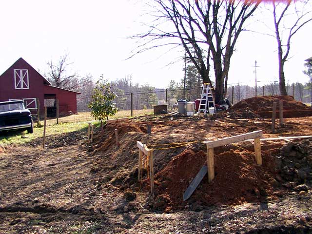 The grade begins to take shape and the preliminary footers have been dug out. |