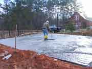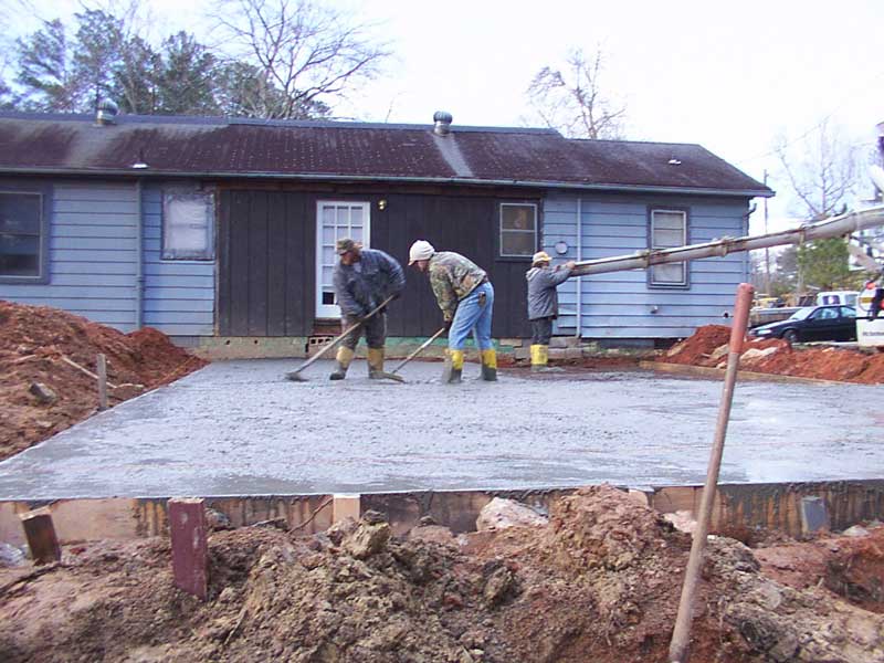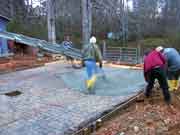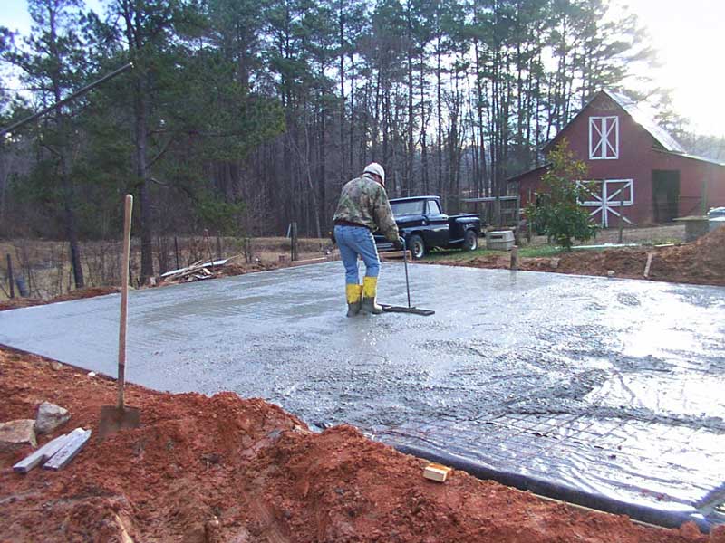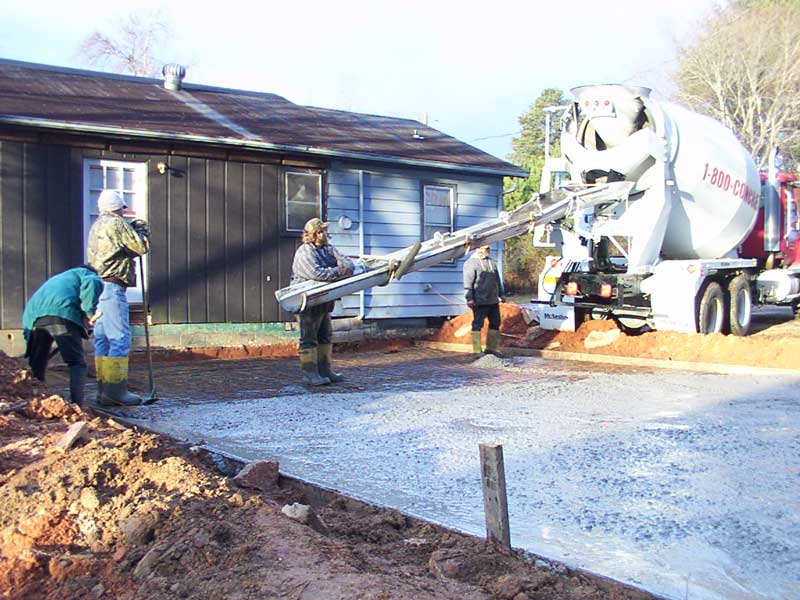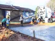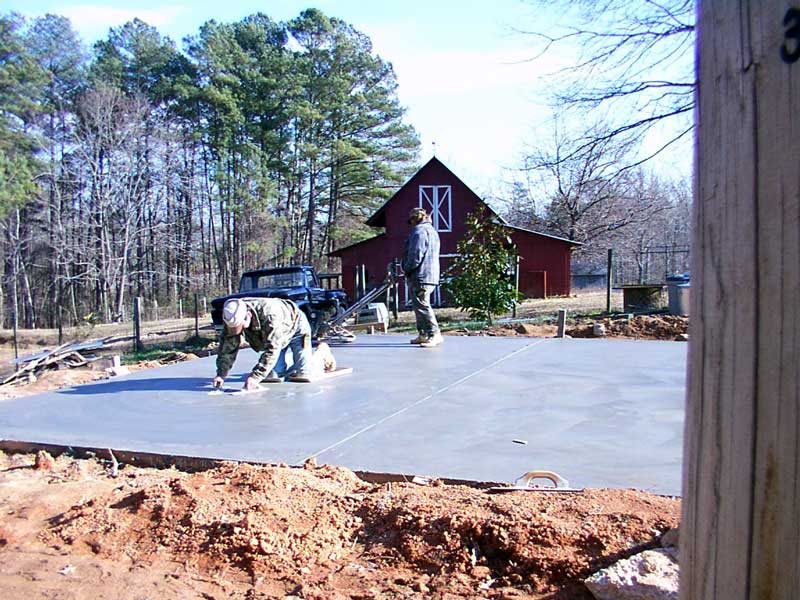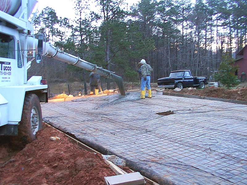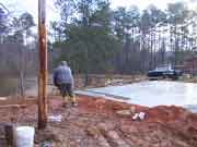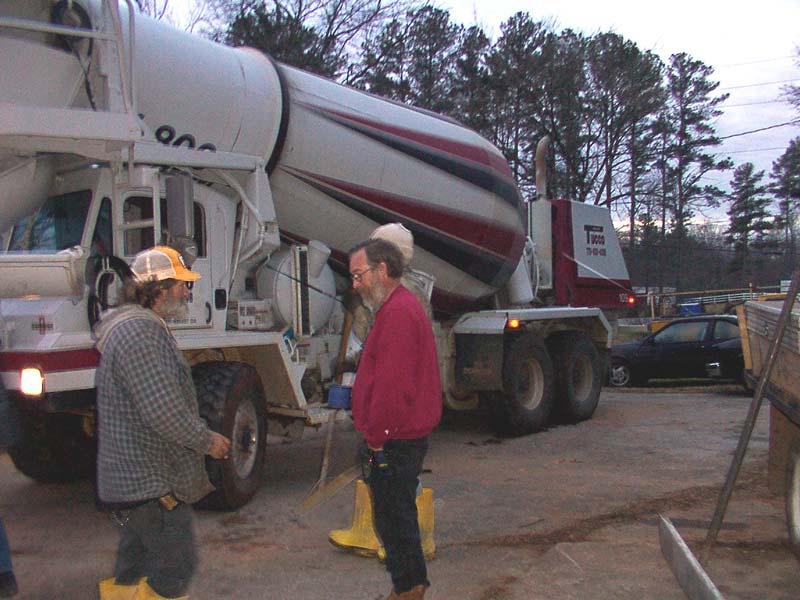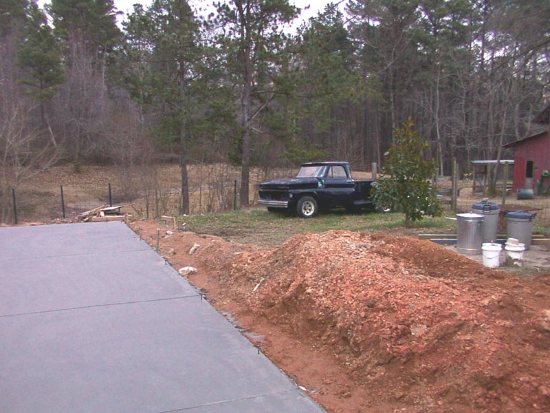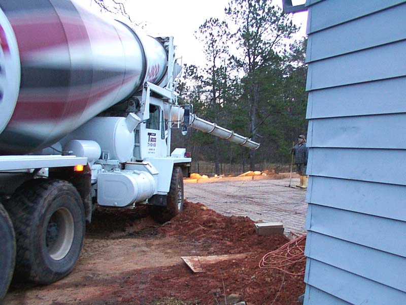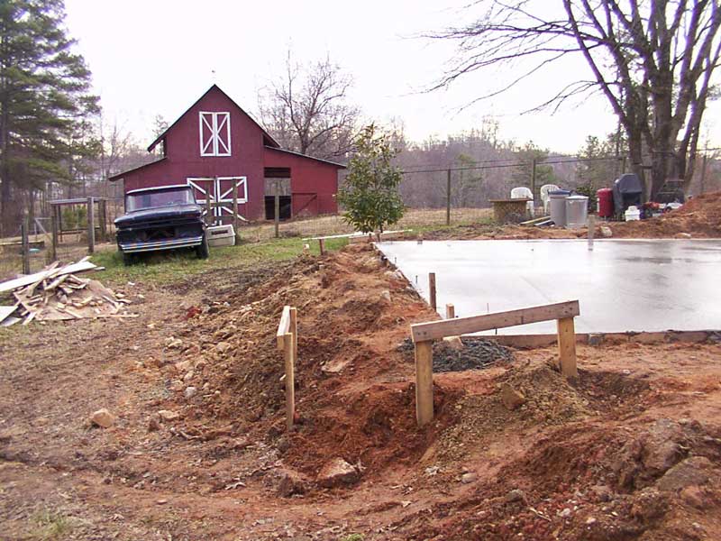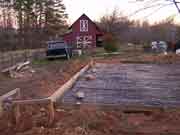 The weather was perfect for pouring the concrete. We had a very high quality crew doing the work. I actually sold my first (1964 half ton Chevy) pickup truck to the concrete subcontractor about three years ago. The first batch of concrete came in one of those "backwards" concrete trucks so that it would reach back far enough and not get stuck in the mud. Now that it is finished, we have to let it sit for a few days to cure, and then we start the framing! |